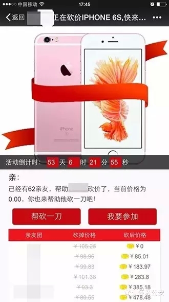 最近朋友圈盛行“帮忙砍价”的活动,据称经过众多好友的帮忙,可以将原价5288的iPhone 6s砍到“一元购”。那么朋友圈“帮砍价”是骗局吗?帮砍价免费拿东西到底是真的假的呢?有媒体报道,一位大三女生在朋友圈参加了一个“1元得苹果手机”的砍价活动,经过众多好友的帮忙,终于把一台iPhone 6s砍到了2000元。但是,汇款之后,女生收到的不是“iPhone”手机,而是一台市价不足300元的“1Phone”手机。 这位女生的受骗经历在网上经过传播之后,引发了不少网友的共鸣。随后,微信上“帮砍价”活动也被网友揭露出“骗局”的真实面目。 事实上,微信“帮砍价”活动起初只是用于营销。不少商家通过这种活动吸引人们在朋友圈转发关注,从而吸引了一大圈粉丝,短时间获得了大量关注度,实现不错的营销效果。但是后来,这种成本低,操作简单,而且受众容易上当的的活动给不法分子盯上了,于是演变成了一种新型的骗局,充斥着整个朋友圈。 其实,这种骗局的规则很简单,只要邀请好友为自己“砍价”,即点击该链接帮忙砍价,就可随机减少不等的金额,直到变为很优惠的价格,甚至可以免费得到礼品。然而,很多砍价成功的微友不但没有收到奖品,反而泄露了个人信息。 ![]() 此前,一则名为“京东双11预热,砍价0元拿iPhone 6s”的活动链接在各个微信群和朋友圈内疯传。根据链接中的活动规则,参与者在砍价成功后需要在弹出页面输入联系人、地址、电话,但之后却没有一个人拿到手机,而且不少参与的用户收到了大量广告短信、恶意链接甚至诈骗信息。之后,京东还专门为此辟谣,提醒用户小心上当。 尽管如此,这样的骗局依然在微信朋友圈泛滥。在我点击了一条“帮砍价”的链接之后,便进入了一个高仿的“京东”页面,该页面不仅有京东的标志,还显示着参与“帮砍价”的商品和原价格等。界面下角则有参与“砍价”的好友姓名和砍价价格。此外,界面上还有“帮TA砍价”和“我要参与”的按键。如果点击按键,则需要填写个人电话、住址等个人信息。而当用户“砍价”到零元时,整个活动页面就会失效。 在这种微信“帮砍价”活动中,骗子主要有两种目的:一是为了收集个人信息,二是为了骗钱。所以,参与过的用户接下来会收到大量的广告短信和诈骗短信。 有业内人士表示,这种“帮砍价”活动并不是微信官方开发的应用软件,并没有安全保障。这类活动填写的个人信息其实链接着后台服务器,一旦点开活动页面,用户的一系列相关的个人信息将会泄露出去,电子银行账户安全堪忧不说,各种广告骚扰也将接踵而至。更严重的是,如果此类小活动的开发公司将后台收集到的用户信息卖给广告商、中介或一些欺诈集团,无疑会对用户的个人隐私及财产安全带来巨大威胁。 事实上,除了“帮砍价”,在微信朋友圈还有一些活动大家要小心,比如“算命”、“测姻缘”、“算算你5年后的生活状态”等测试小活动。这些活动的共同特点就是需要填写个人资料,包括姓名年龄、手机号甚至是身份证号。不法分子正是借助这些活动套取微友个人信息之后再进行诈骗。 面对如此不安全的“朋友圈”,我们应该如何避免上当? 提高自己的隐私保护意识显然是最重要的一点,在朋友圈如果看到“低价”、“免费”等字眼,都不要轻信“优惠”链接。由于目前如QQ、微信、支付宝等应用很可能绑定了银行卡和身份证,所以用户不应轻易把自己的姓名、手机号、QQ及微信号等信息泄露给他人,同时还应防止类似可疑信息的扩散,切勿帮忙转发。一旦遭遇行骗并造成损失,应及时向公安部门进行举报。 当然,如果我们能够坚信天底下从来就没有免费午餐,也没有凭空掉下来的“馅饼”,或许就不用再为自己“贪小便宜”的行为买单了。 |